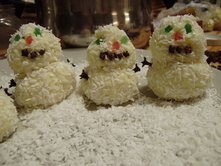 - Forgassuk bele a golyókat kókuszreszelékbe, és kicsit összenyomva kettőt-kettőt, tapasszuk egymáshoz a fejet és a pocakot.