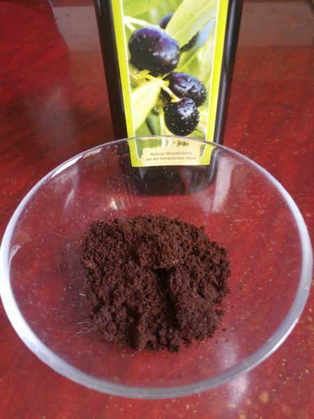 - Egy közepes tálban alaposan keverj össze 80 g friss kávézaccot, 60 ml olívaolajat, 5 ml vanília kivonatot, 200 g nyerscukrot és 15 csepp borsmentaolajat. A készítmény zárható, szélesszájú üvegben hűvös helyen 1-2 hétig tárolható, hűtőszekrényben tovább is.
