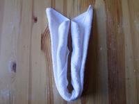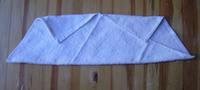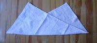 1. Átlósan hajtsd félbe a kendőt. (Vékony anyagból laposabb állatka lesz.)