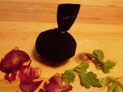 2.) Ha szükséges, tekerd körbe fehér cérnával a kis csomagot, és tedd egy kidobásra ítélt nejlonharisnyába vagy zokniba, majd gumizd össze a végét.