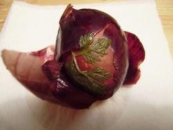 Talán az egyetlen megkötés, hogy a tojás méretéhez igazodjék, jól mutasson rajta: lehet akár petrezselyem, zellerlevél, sárgarépa zöldje, lóhere, pitypanglevél stb. A piaci friss eper és a fürtös paradicsom levelét is kipróbáltam – mindkettő telitalálatnak bizonyult!