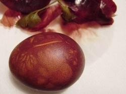 A vöröshagyma héja élénk narancssárga színt, a lila hagyma mélyvöröset ad. A megmosott, vékonyra hámozott céklahéjtól barnásvörös lesz a tojás, a lila káposzta levelétől pedig szép szürkéskék. Spenótlevéllel állítólag zöldet festhetünk, de ezt nem sikerült kipróbálnom…